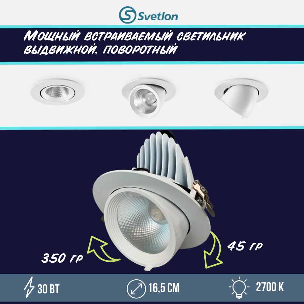 Встраиваемые поворотно-выдвижные светильники 30W 2700К.