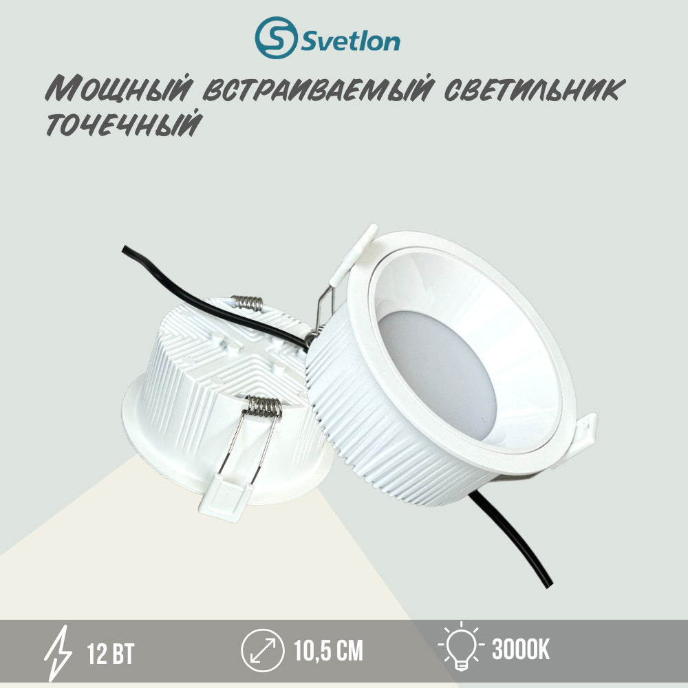 Светильник светодиодный встраиваемый точечный 12Вт 3000К D10,5см круг с углублением