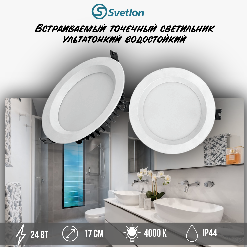 Светильник светодиодный встраиваемый точечный влагостойкий 24Вт 4000К ультратонкий D17см круг IP44