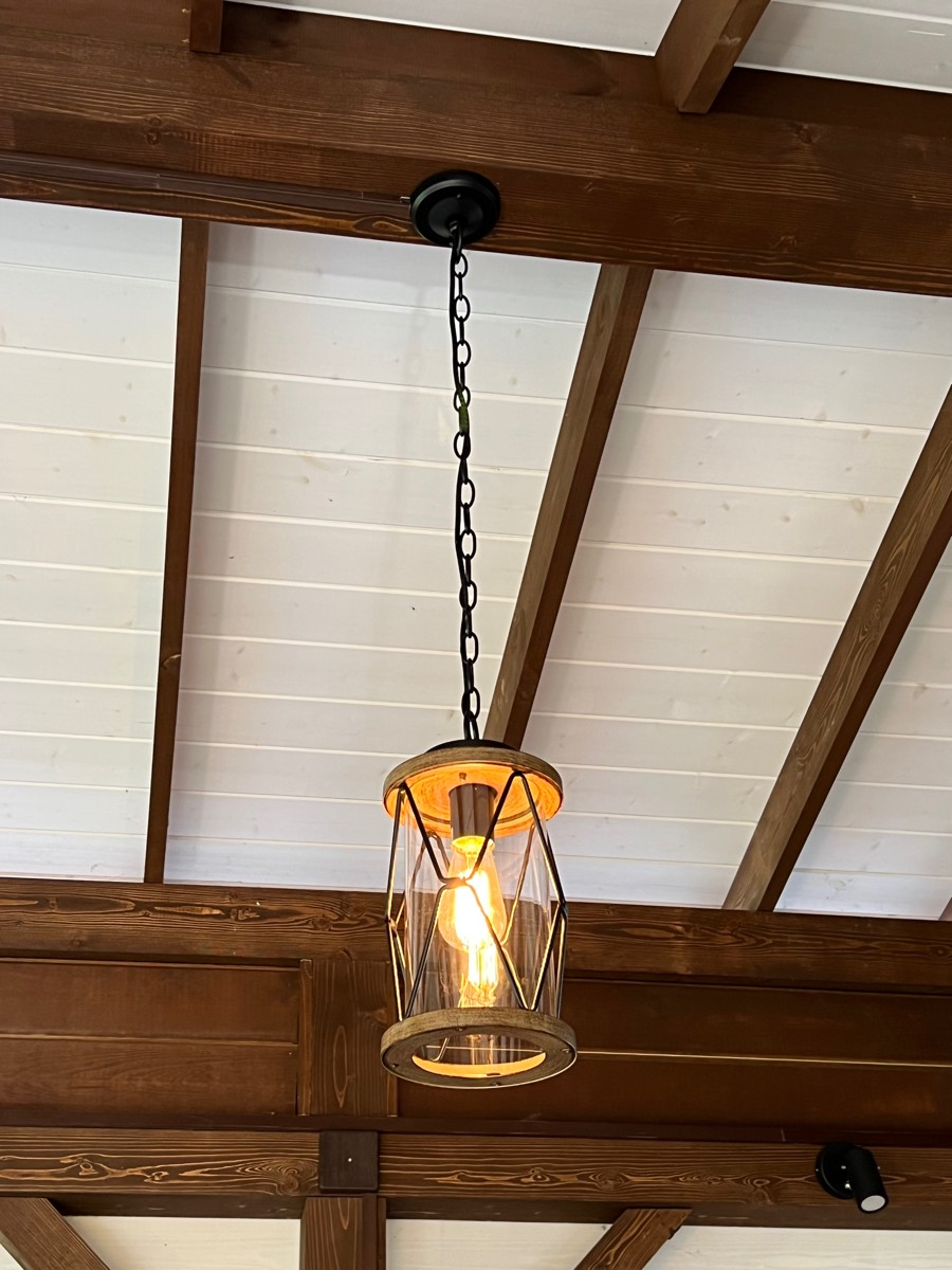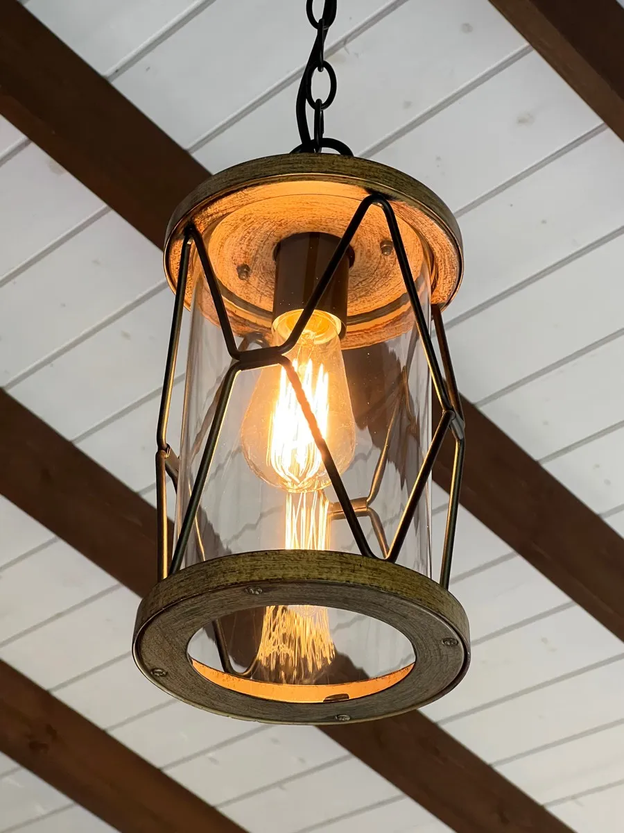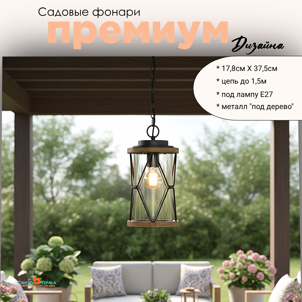 Светильник уличный подвесной фонарь на веранду M 17,8*37,5см подвес 1,5м Е27 черный/дерево (цвет под дерево) IP44