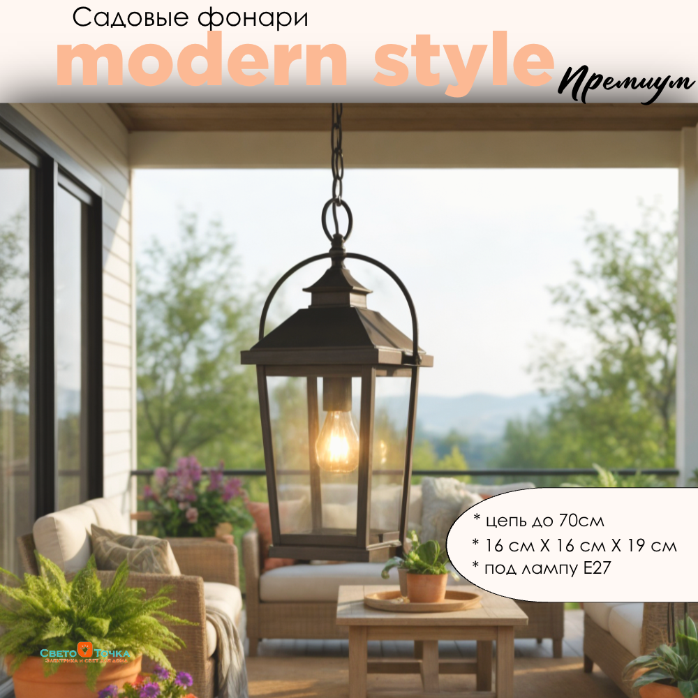 Светильник уличный подвесной фонарь на веранду 19x16x39,5см черный Е27 подвес 70см IP44