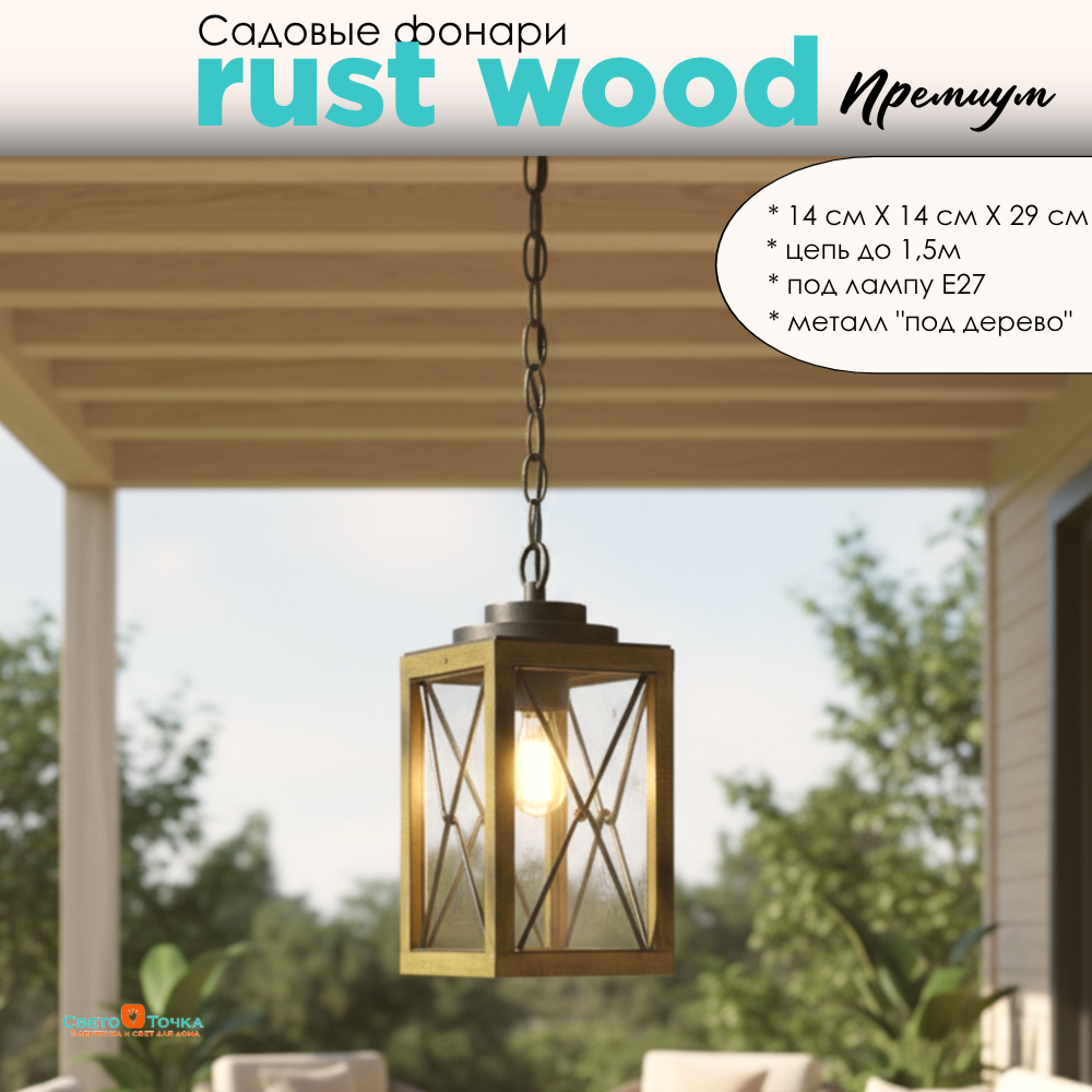 Светильник уличный подвесной фонарь на веранду 14,1*29,7см подвес 1,5м Е27 черный/дерево (цвет под дерево) bw IP44