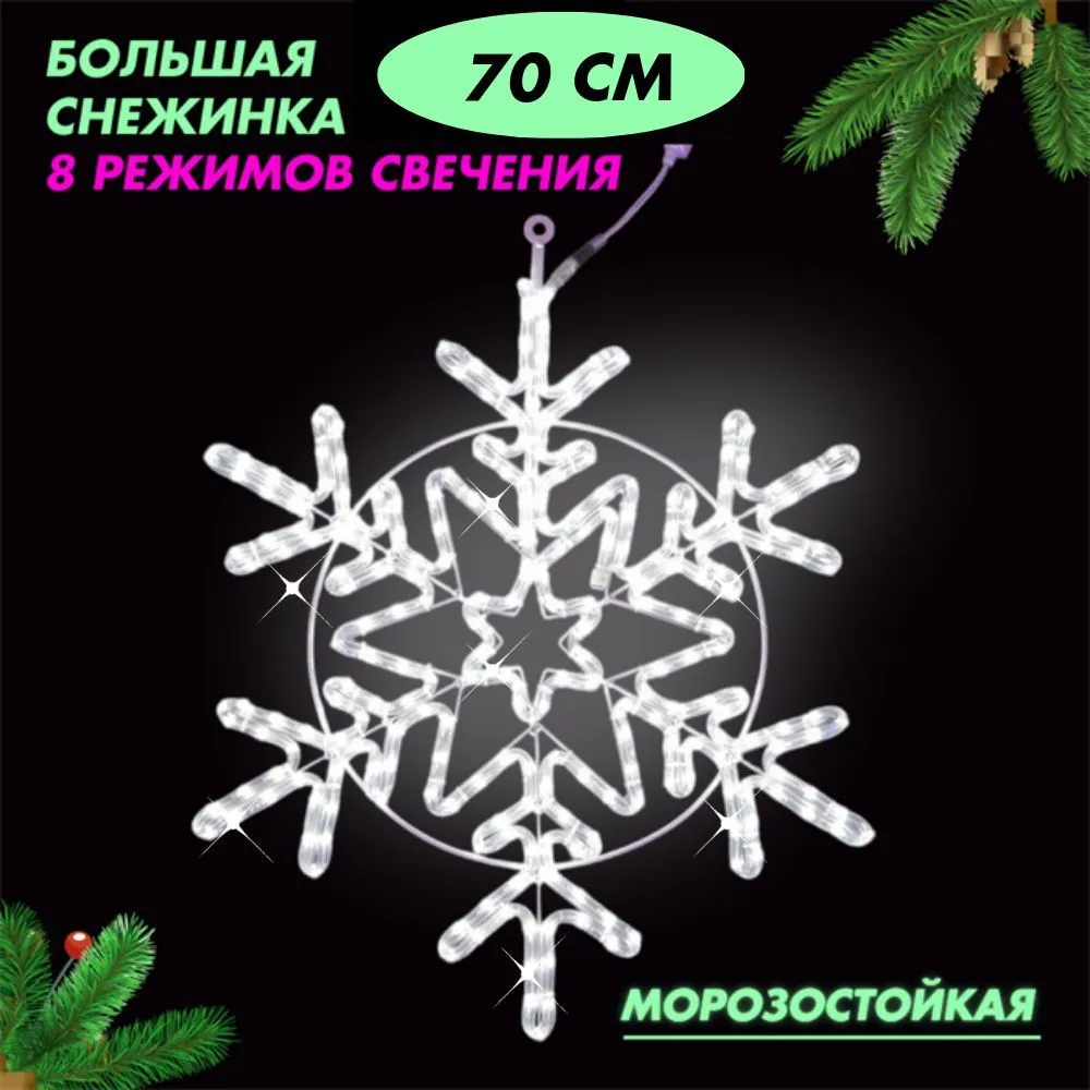 Световая фигура уличная новогодняя светодиодная Снежинка большая, 8 режимов белое свечение, D70см IP54, украшение на Новый год