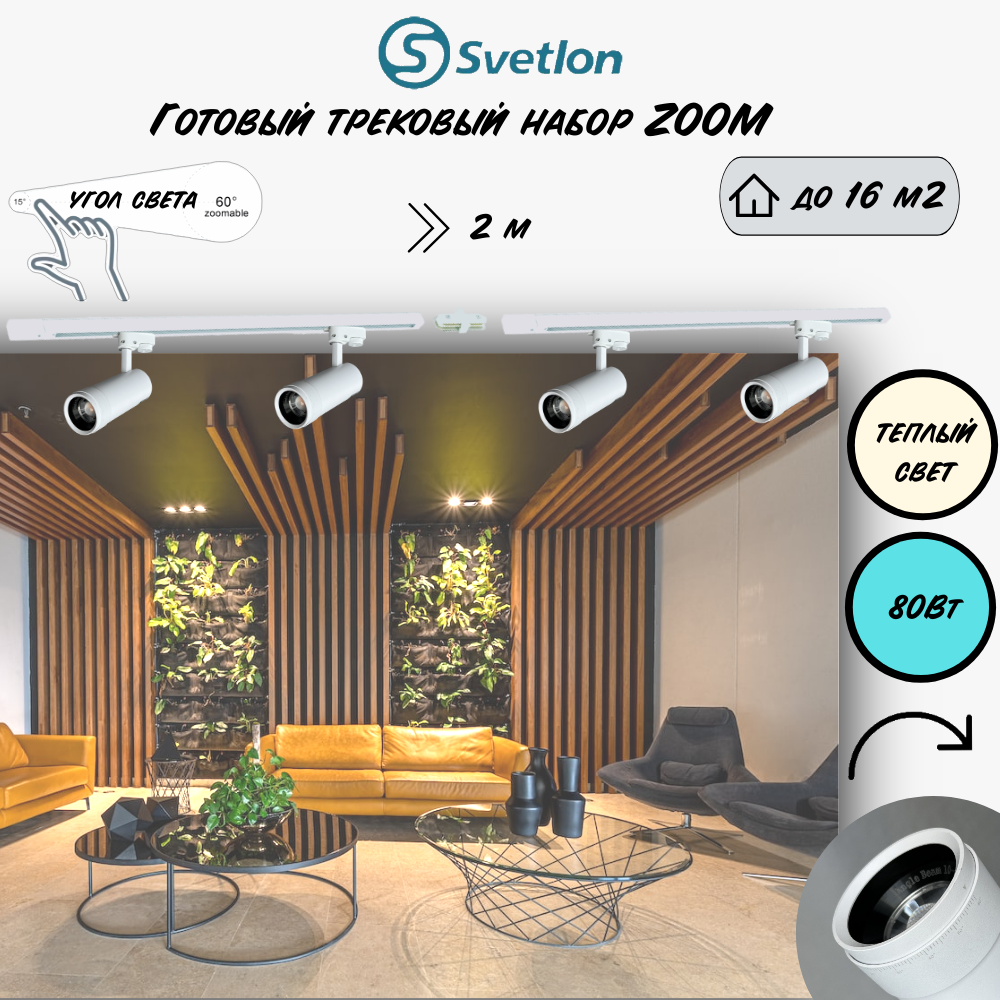 Трековые светильники светодиодные белые набор 2м 80Вт 2700К TRA2 ZOOM 10-60гр регулируемый угол свечения