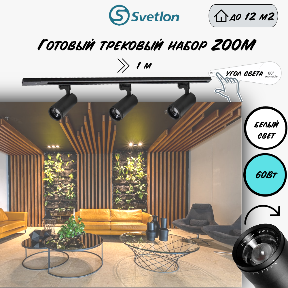Трековые светильники светодиодные черные набор 1м 60Вт 4200К TRA2 ZOOM 10-60гр регулируемый угол свечения