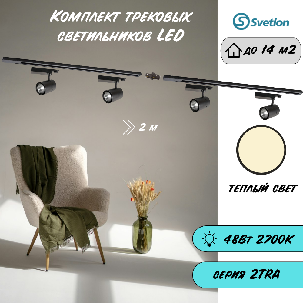Готовый набор из треков на 2м и 4-х трековых светильников, освещение до 14м2 общей мощностью на 48Вт. Каждый светодиодный светильник LED 12W это надёжный и компактный светильник заливающего света, предназначенный для декоративного или акцентного освещения торговых помещений, зданий и сооружений хозяйственного и жилого предназначения. В качестве источника света в составе светильника используется светодиодный модуль мощностью 12W, срок службы которого может достигать 40000 часов. Продолжительный период эксплуатации светодиодного модуля обеспечивается использованием в конструкции светильника качественного блока питания и эффективной системы охлаждения. Отражатель светильника обеспечивает равномерное распределение света по всей поверхности светового пятна.