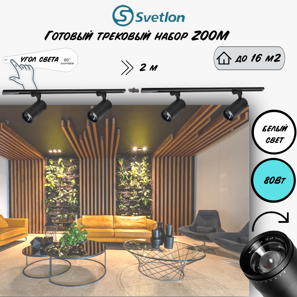 Трековые светильники светодиодные черные набор 2м 80Вт 4200К TRA2 ZOOM 10-60гр регулируемый угол свечения