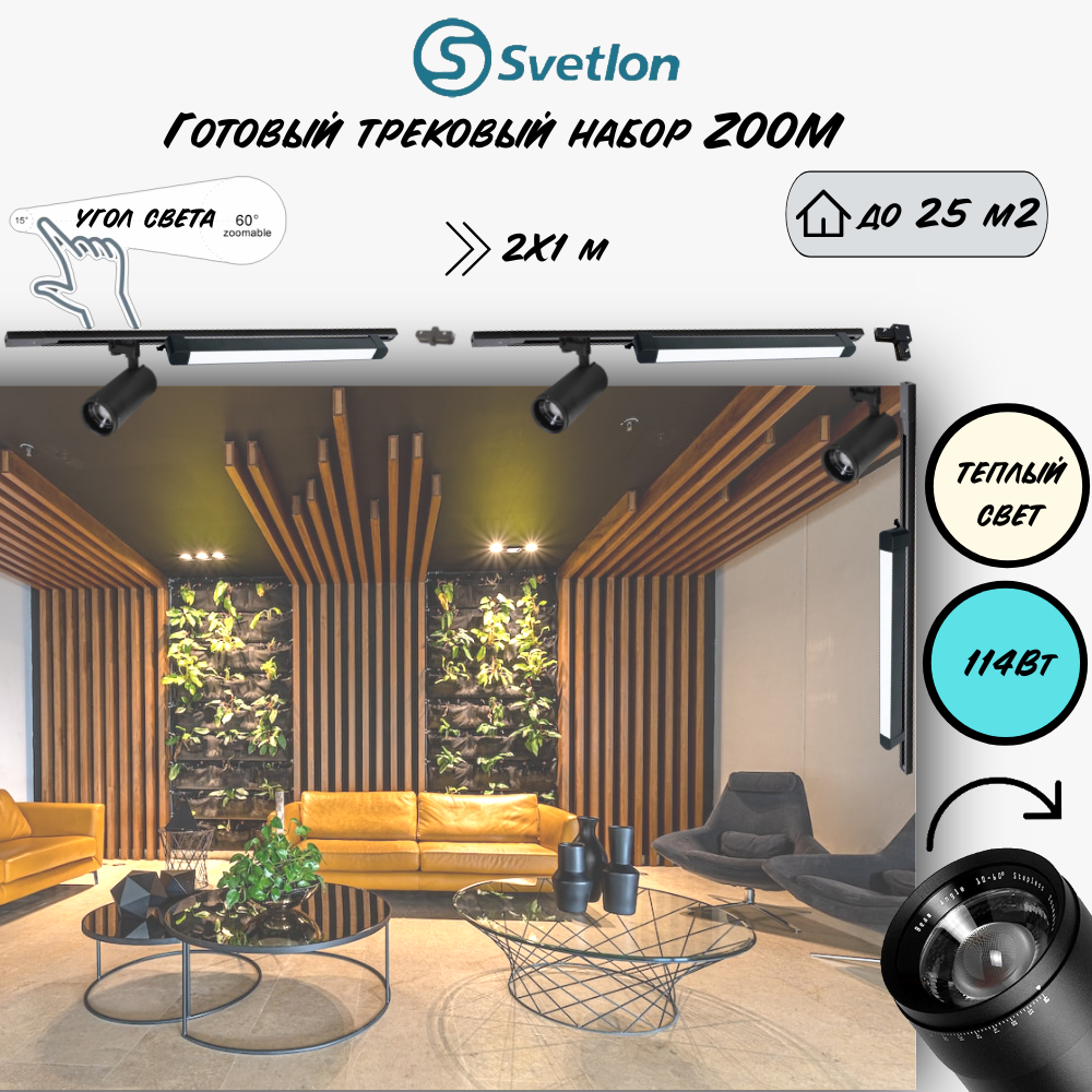 Трековые светильники светодиодные черные набор 3м 114Вт 2700К TRA2 ZOOM 10-60гр регулируемый угол свечения
