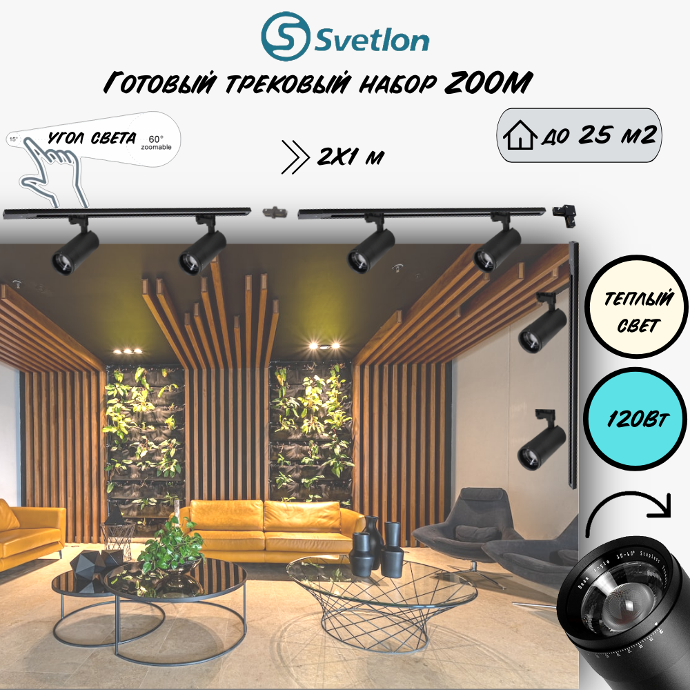Трековые светильники светодиодные черные набор 3м 120Вт 2700К TRA2 ZOOM 10-60гр регулируемый угол свечения