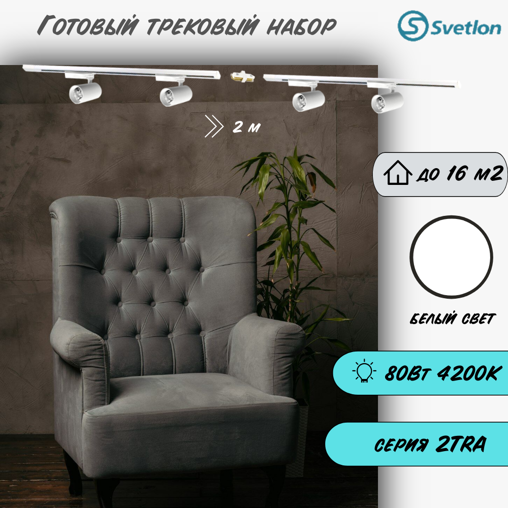 Трековые светильники светодиодные готовый набор белый 2м 80Вт 4200К TRA2 споты 12.6X7.2см