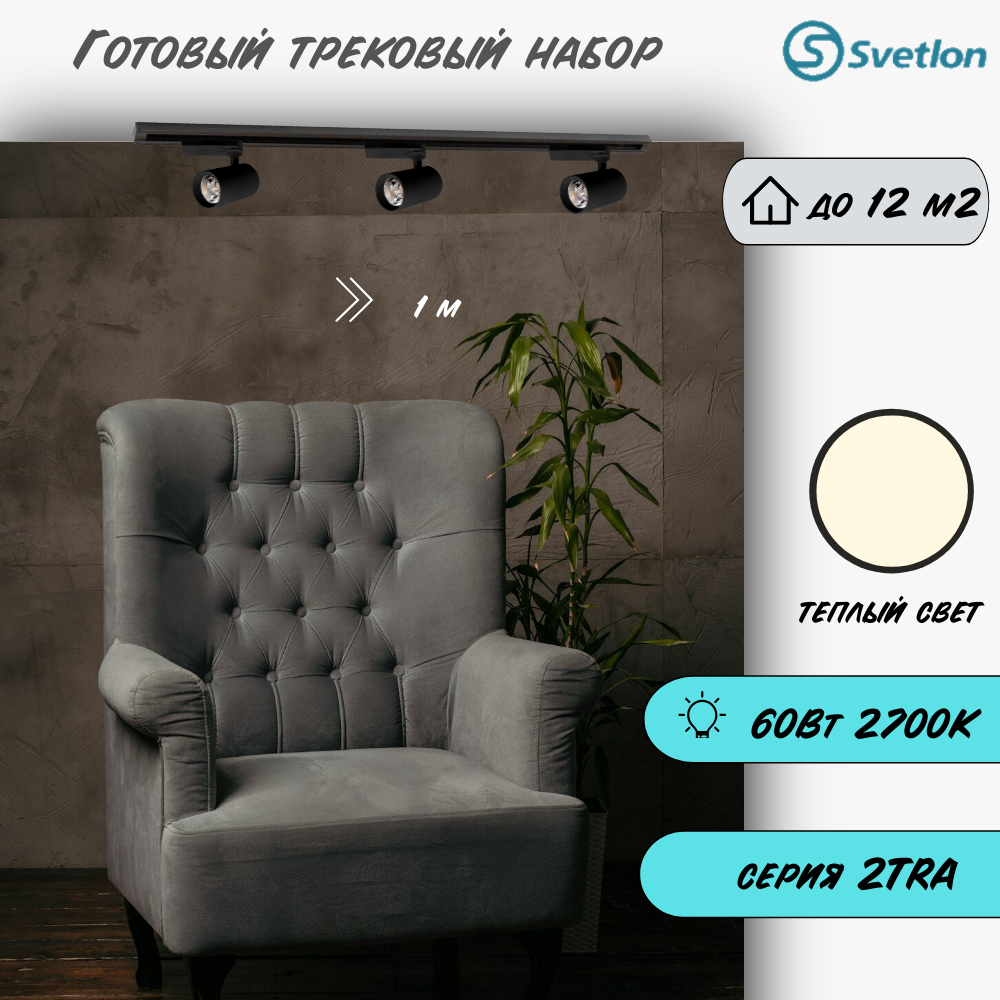 Трековые светильники светодиодные готовый набор черный 1м 60Вт 2700К TRA2 споты 12.6X7.2см