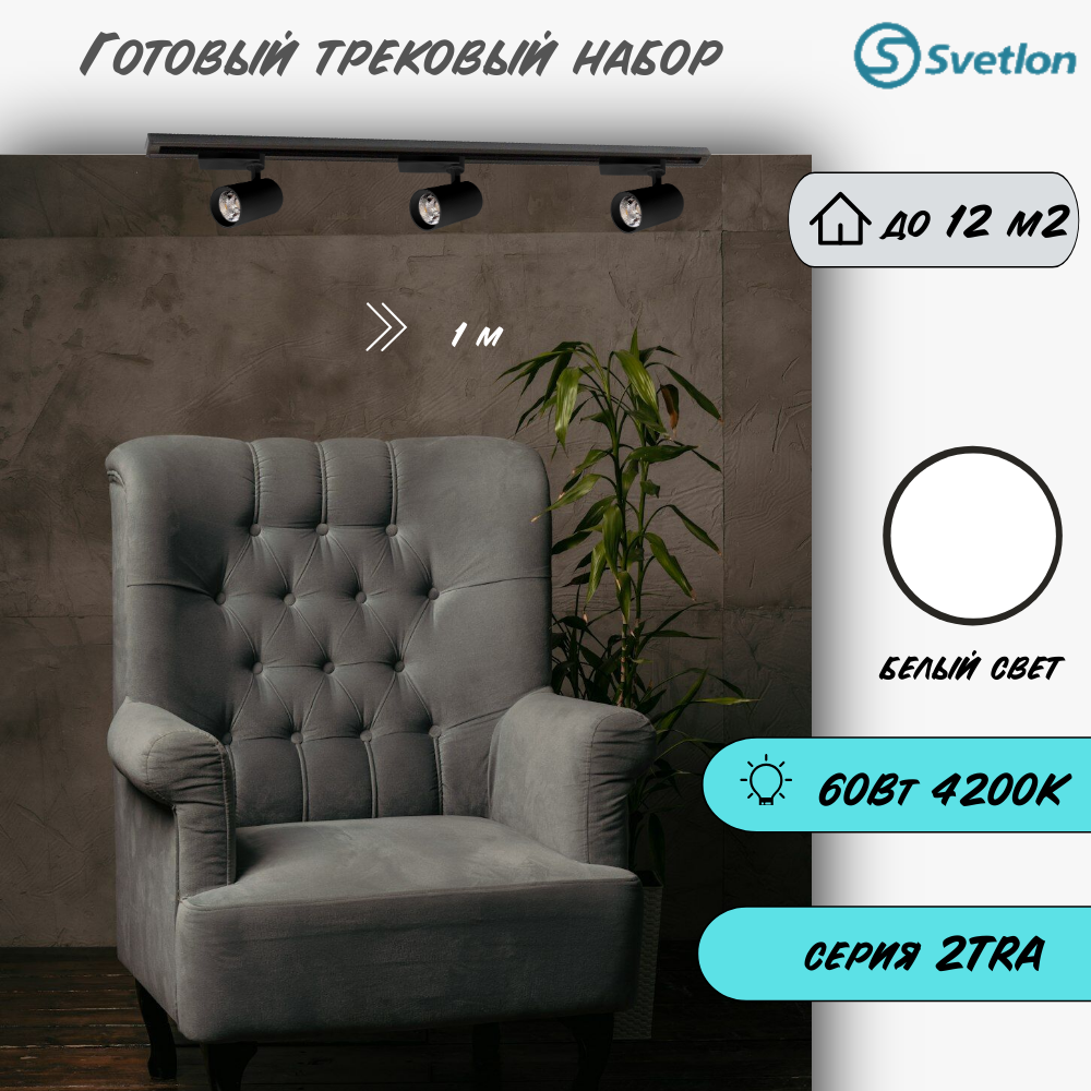 Трековые светильники светодиодные готовый набор черный 1м 60Вт 4200К TRA2 споты 12.6X7.2см