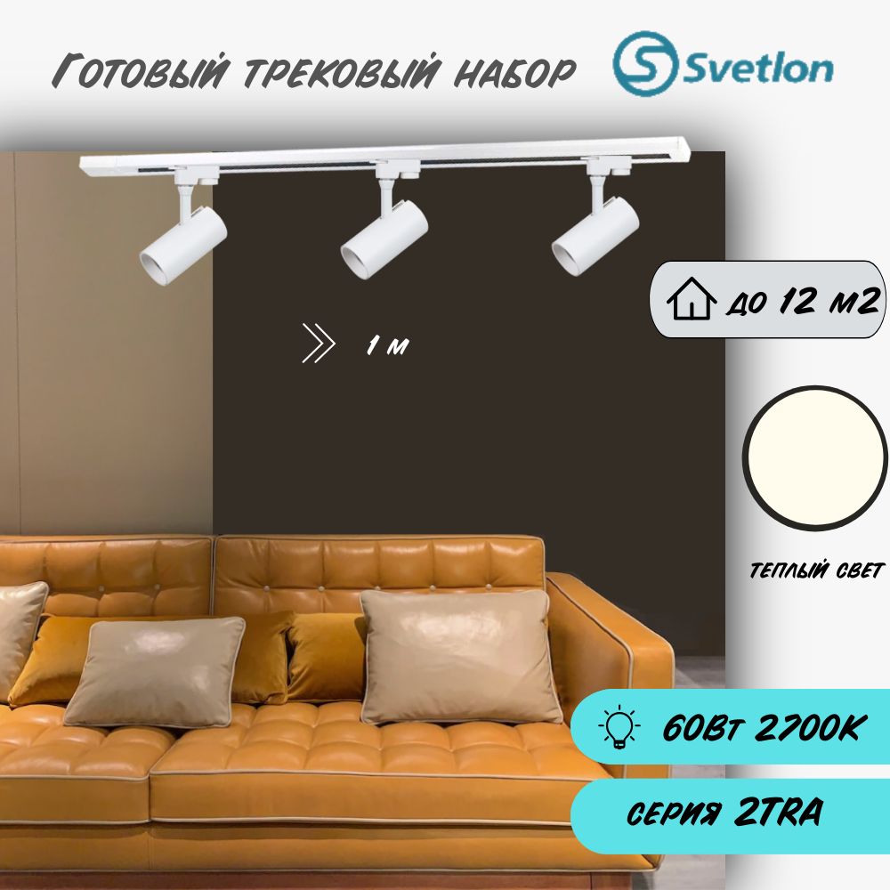Трековые светильники светодиодные набор 1м белый 3штX20Вт 2700К TRA2 споты 17X7см