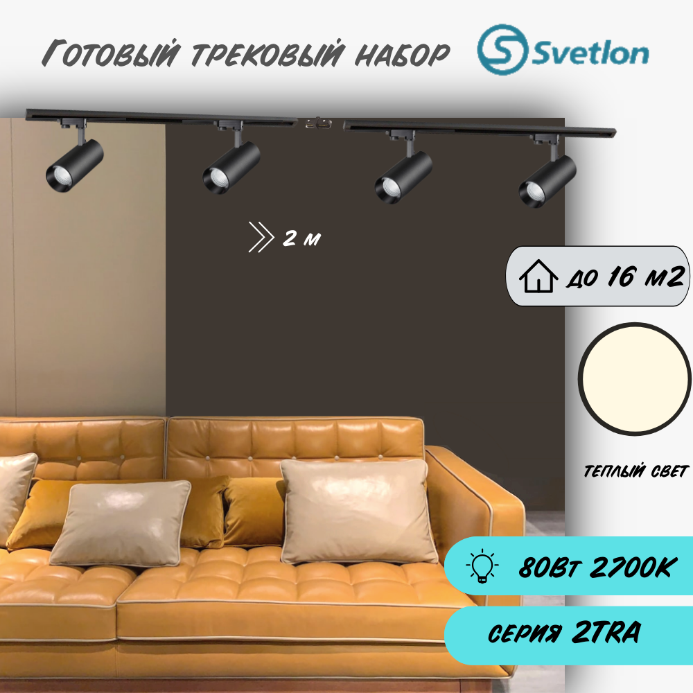 Трековые светильники светодиодные набор 2м черный 4штX20Вт 2700К TRA2 споты 17X7см