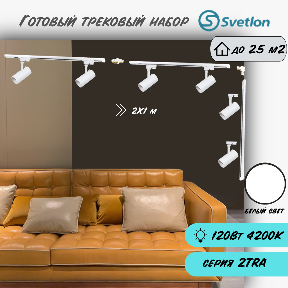 Трековые светильники светодиодные набор 2X1м белый 6штX20Вт 4200К TRA2 споты 17X7см