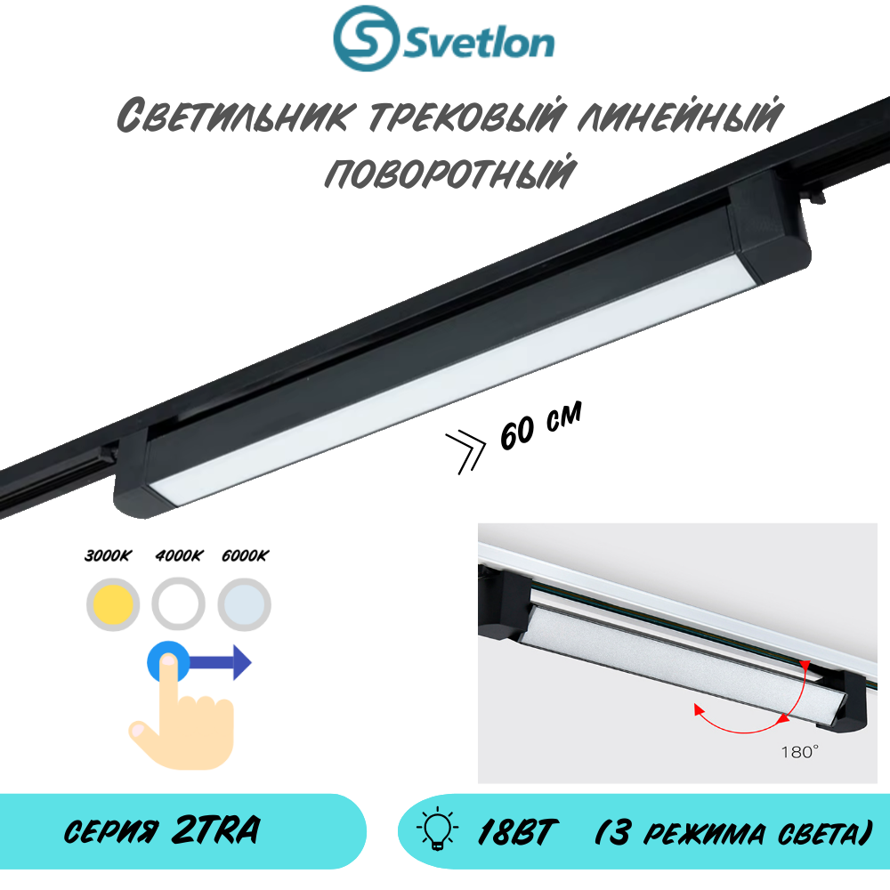 Трековый линейный светодиодный светильник поворотный 18Вт 3000-4000-6000К 60X3.4X3.4см черный