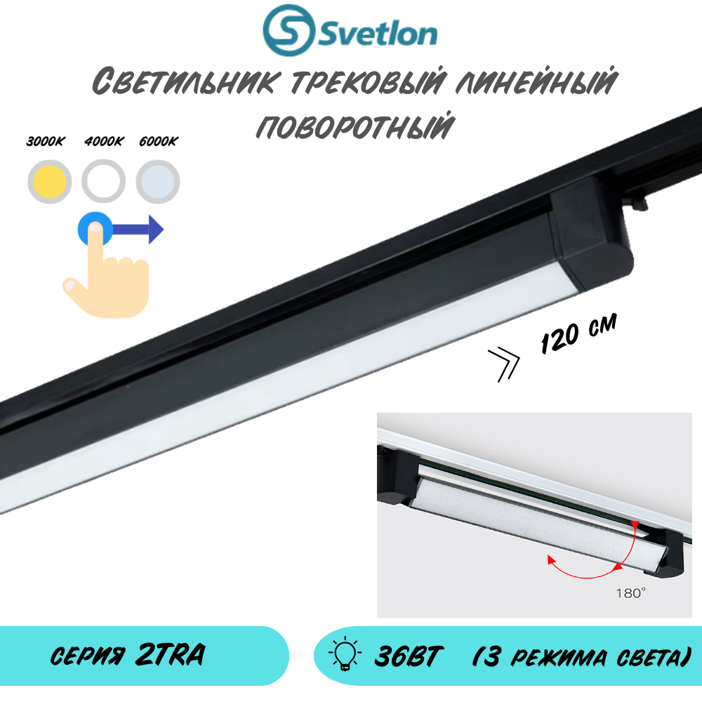 Трековый линейный светодиодный светильник поворотный 36Вт 3000-4000-6000К 120X3.4X3.4см черный