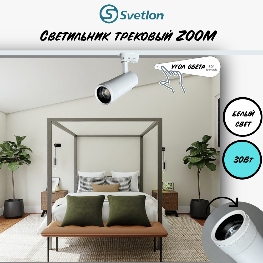 Трековый светильник светодиодный белый 30Вт 4200К TRA2 ZOOM 10-60гр регулируемый угол свечения