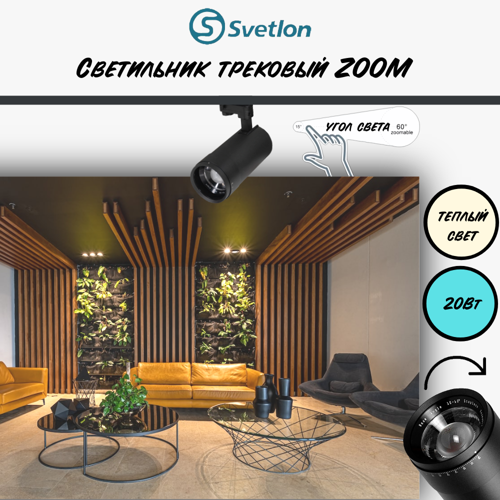 Трековый светильник светодиодный черный 20Вт 2700К TRA2 ZOOM 10-60гр регулируемый угол свечения