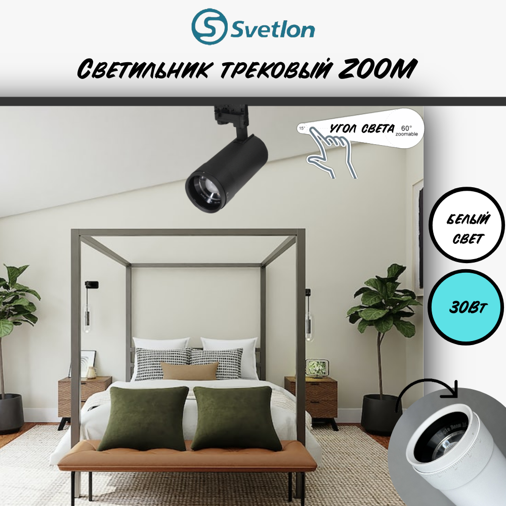 Трековый светильник светодиодный черный 30Вт 4200К TRA2 ZOOM 10-60гр регулируемый угол свечения