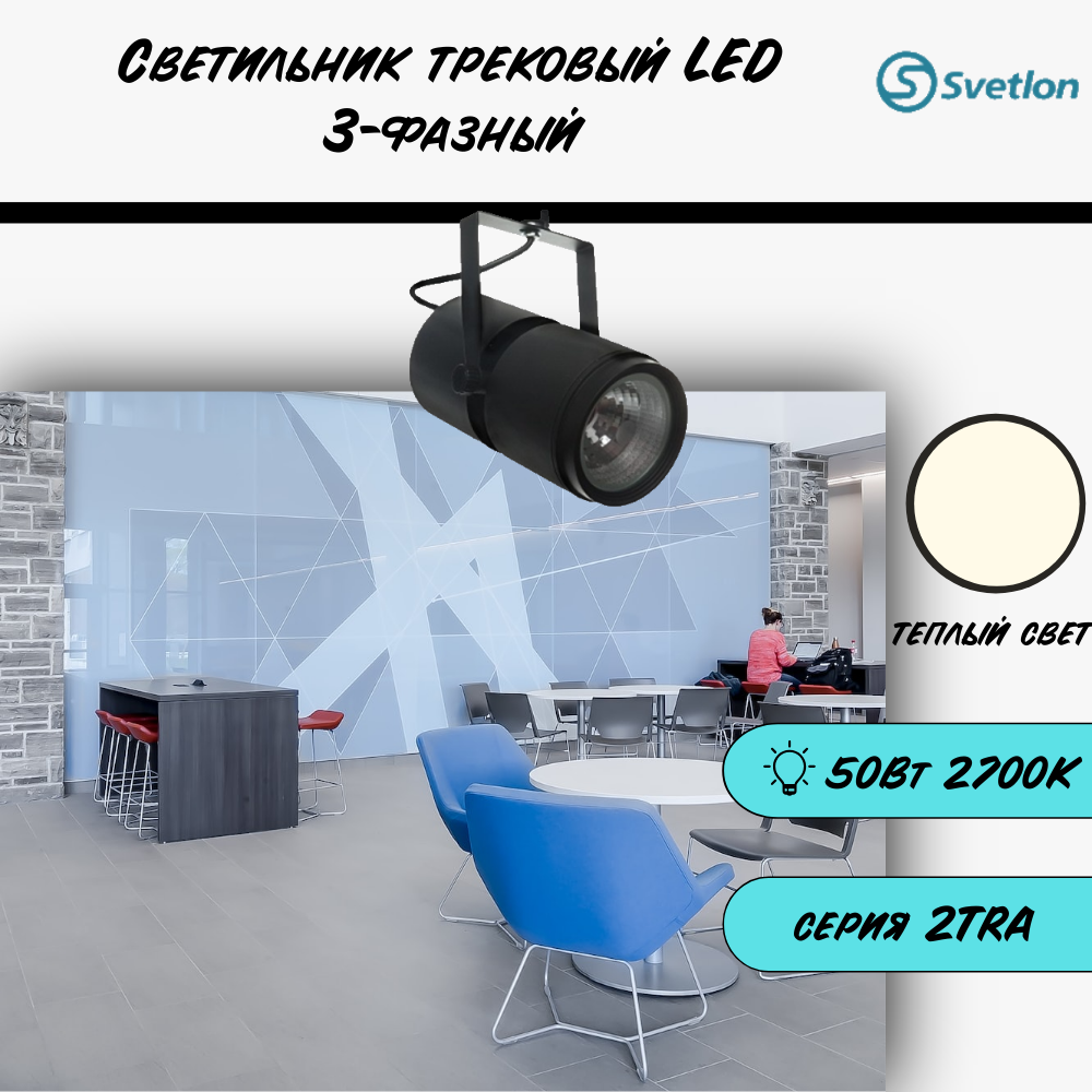 Трековый светильник светодиодный черный 50Вт 2700К прожектор высокой мощности 4TRA 24X12,5см