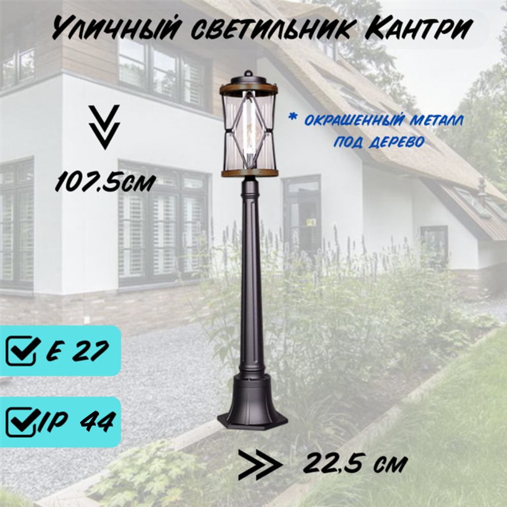 Уличный наземный светильник M 107,5*19,6*22,5см Е27 черный/дерево (цвет металла под дерево) IP44