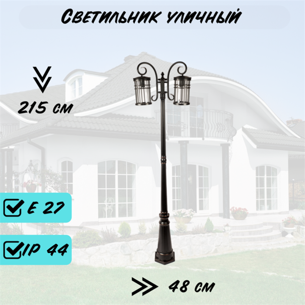 Уличный наземный высокий светильник c 2-мя плафонами S 215*48см Е27 черный/медь I44
