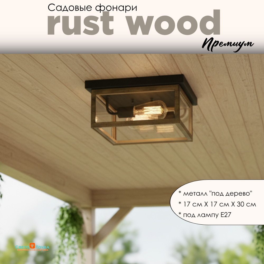 Потолочный фонарь уличный в оригинальном цвете rust wood — сочетание черного металла с изысканной окраской под дерево.