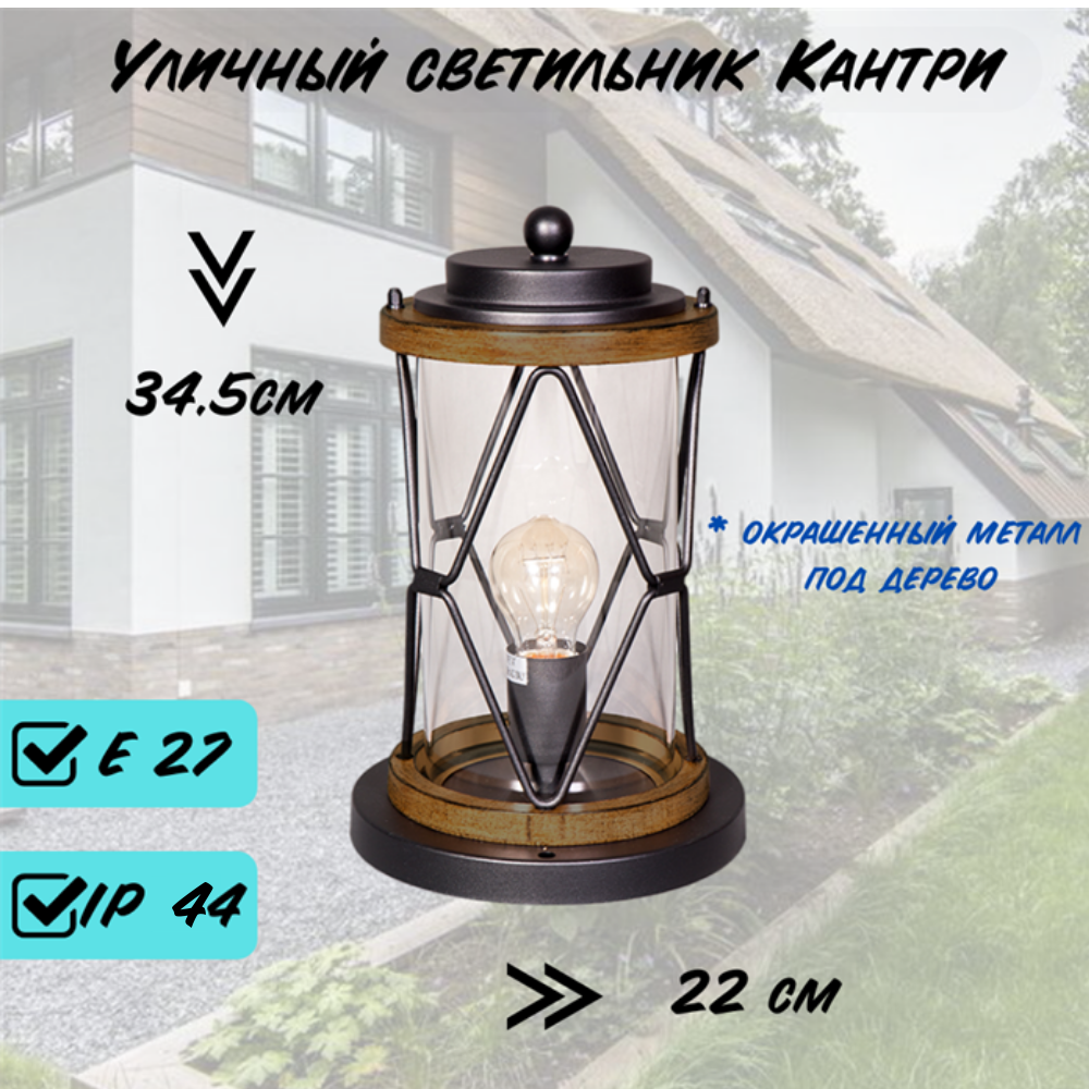 Наземный низкий светильник 34,5*22см Е27 черный/дерево (цвет металла под дерево) IP44